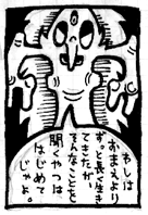 神さま、正しいとはどういうことなんです? ![]() 香山哲先生が夜勤明けに一気に描きあげた初期代表作。15ページ。いつもの通り未完。全編これブッ飛んだ名セリフの連発で、数ある先生の作品の中でも「読むドラッグ」度がもっとも高い作品の一つだ。 ある日「正しいとはどういうことか?」という疑問を持ったヒュマノス(人間そのもの。集団としての一つのもの)が、神にその答えを問いかける。ヒュマノスは神の導きによってメジャノス、セッチュウ、キッパリアのもとを訪れる。 メジャノス「有効回答中99%が「はい」と答えた。故にこの私がメジャノスだ。」 セッチュウ「階層の上昇はつまり、神からの離脱!!」 キッパリア「ほっほっほ。それじゃあ君、ゼロ手読みじゃよ。」 「正しいとはどういうことか?」という哲学的なテーマを扱っているにも関わらず、出てくるキャラクターがみなおもしろいヤツばかりで決してシリアスにならない。ただし、「正しいとはどういうことか?」との質問に対する神の答えは「つまり、正しさとは形を変える概念なんじゃ。」「なるほどわしにも正しさとやらがようやく見えてきたぞ。」という、なんともよくわからないもので、内容を理解することは困難を極める(けれども、この神の能力の謙虚なところが個人的にはすごく好き)。 |